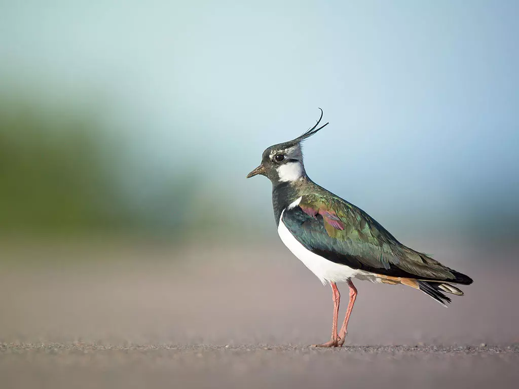 Der Kiebitz ist schwarz-weiß und etwa taubengroß, sein Gefieder glänzt wunderschön in violett und metallisch grün. Er lebt vorzugsweise auf Flächen mit kurzer Vegetation, auf Feuchtwiesen und in Mooren. Beliebt sind auch die Marschwiesen und das Wattenmeer als Rastplätze. Allerdings hat der Kiebitz Bestand in ganz Deutschland in den letzten Jahrzehnten katastrophal abgenommen, fast 90 Prozent der Brutpaare gingen verloren. Auch europaweit hat sich die Population mehr als halbiert. Inzwischen gilt der Kiebitz auf dem europäischen Kontinent als gefährdet und deutschlandweit sogar als stark gefährdet.