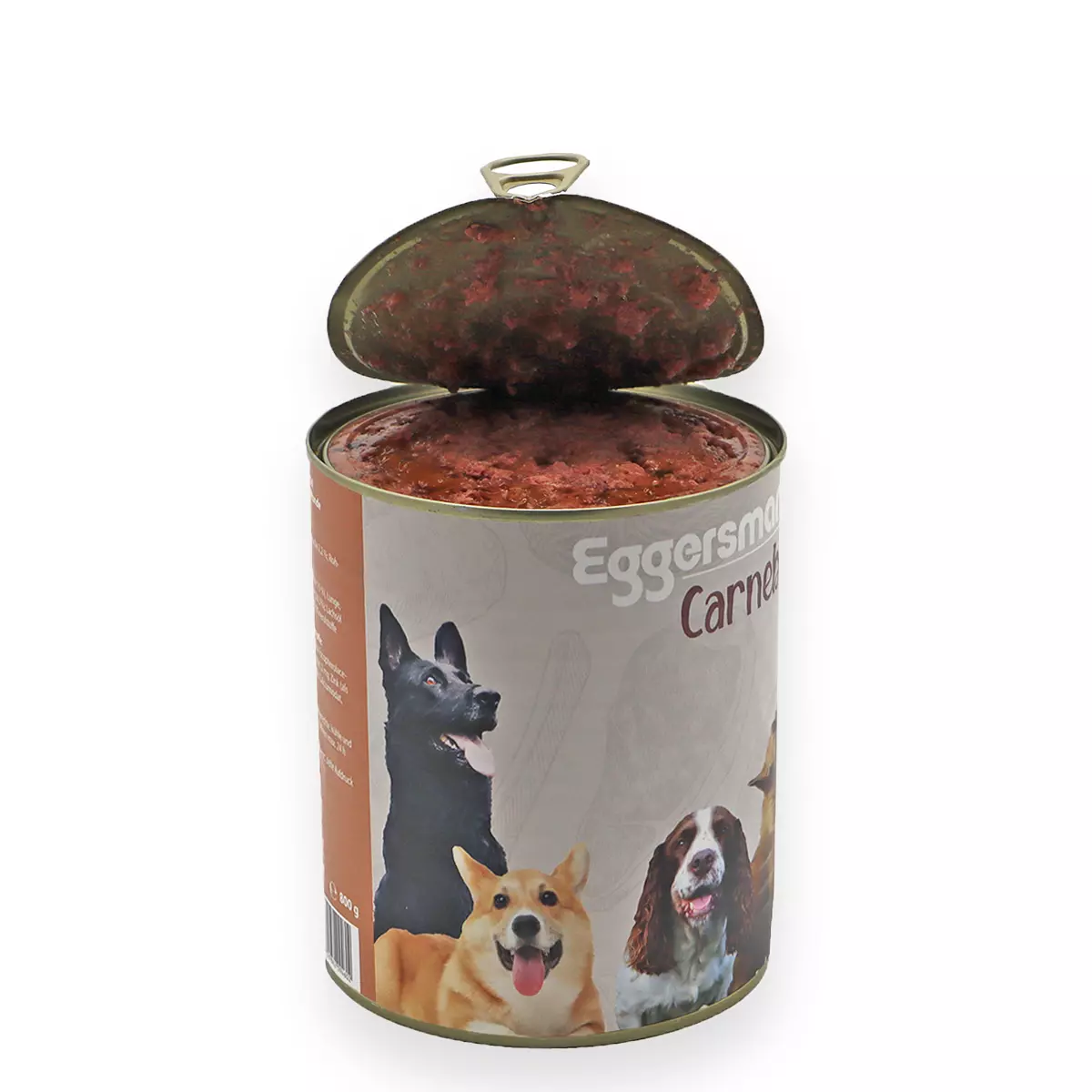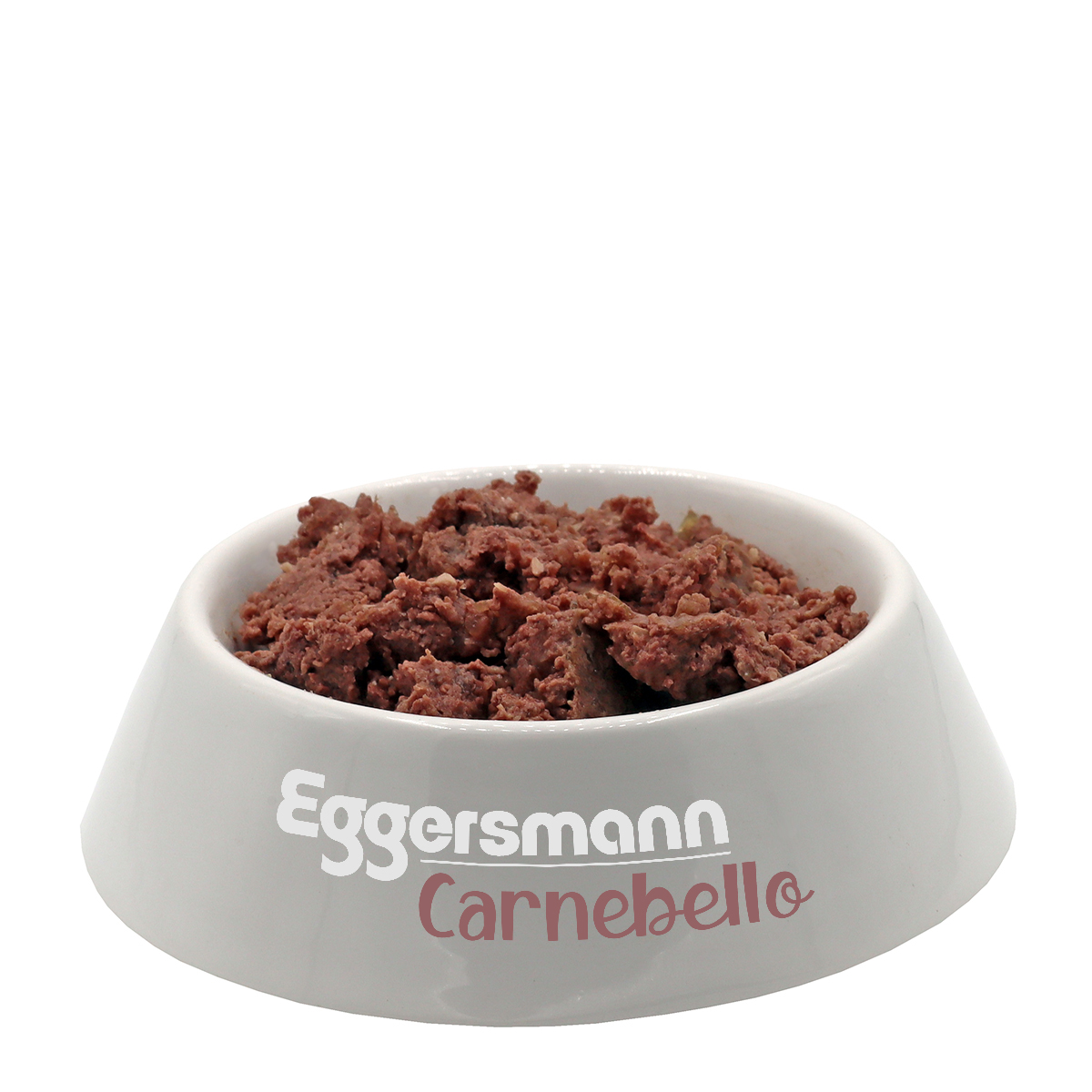 Unser Eggersmann Carnebello mit reichlich Huhn ist ein schmackhaftes Nassfutter mit einem vergleichsweise geringen Energiegehalt, sodass es auch für ältere Hunde bestens geeignet ist. Das erstklassige, fettarme Hühnerfleisch ist gut verdaulich und sorgt für eine feste Fleischstruktur. Durch die Kombination mit Lachsöl und wertvollen Omega-3-Fettsäuren wird Ihr Hund mit allen notwendigen Nährstoffen versorgt. Denn durch die besonders schonende Garung sind noch alle wichtigen Vitamine, Spurenelemente sowie Mineralstoffe im verzehrfertigen Futter enthalten. Durch den kompletten Verzicht auf Getreide, Zucker, wie auch künstliche Farb- und Geschmacksstoffe bieten Sie Ihrem Hund mit unserem Nassfutter eine nicht nur köstliche, sondern auch gesunde Mahlzeit. Unser Eggersmann Carnebello mit reichlich Huhn ist als Alleinfutter für ausgewachsene Hunde geeignet, kann aber auch beliebig mit Trockennahrung kombiniert werden.