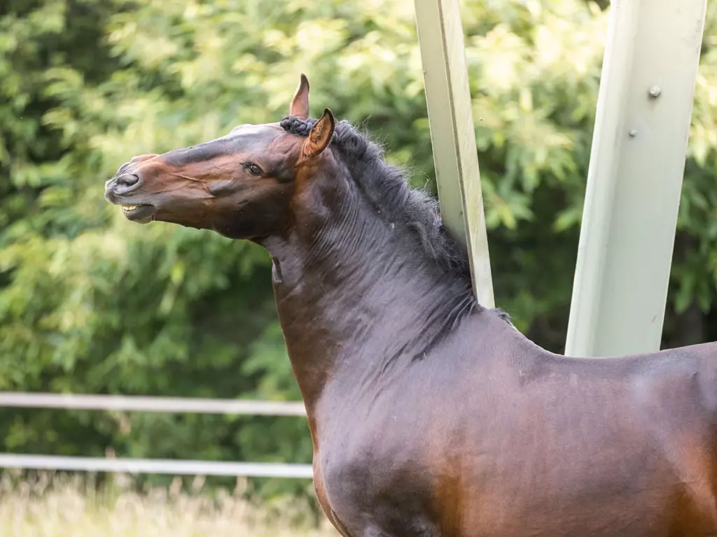 Ekzem beginnt immer mit Hautausschlägen an den betroffenen Stellen, die einen starken Juckreiz beim Pferd auslösen. Dadurch schubbern sich die Pferde, wodurch es zu Verkrustungen und Schuppenbildung auf der Haut kommen kann. Offene Stellen, die teilweise blutig sind, sind keine Seltenheit bei Ekzem-Pferden.