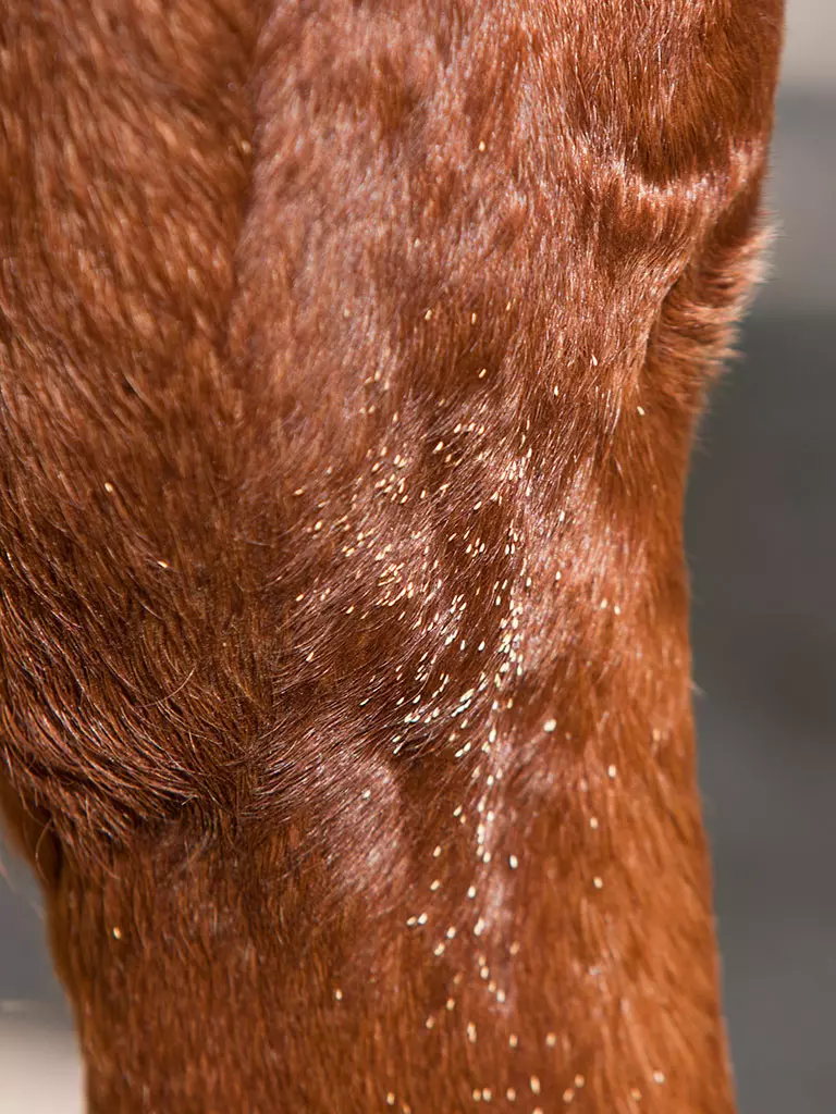 Im Magen-Darm-Trakt angekommen, können die Larven Auslöser für Magengeschwüre oder auch Koliken sein. Sobald einem die kleinen gelben Eier an den Beinen oder anderen Körperstellen auffallen, sollte man diese mit Wasser und Essig abwaschen. Um die Magendasseln mithilfe einer Entwurmung zu bekämpfen, ist zwischen November und Anfang Dezember der ideale Zeitpunkt für ivermectinhaltige Präparate vom Tierarzt.