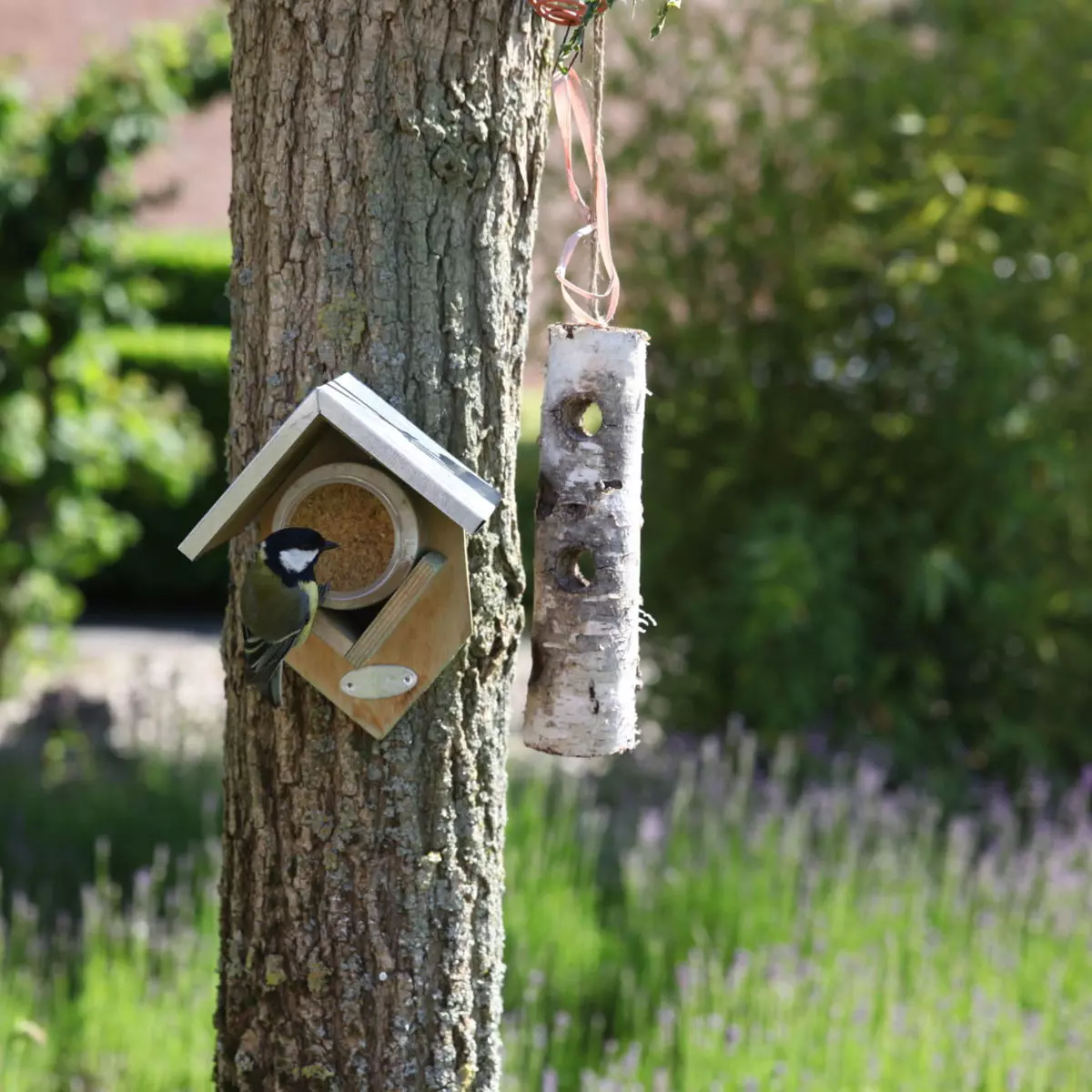 Ein Erdnussbutterbehälter sollte deshalb in keinem Garten fehlen. Diese Grundausführung aus Kiefernholz und mit Zinkdach bietet die Möglichkeit, ein Erdnussbutterglas aufzustellen. Dieses Futter zieht akrobatische Vögel wie Meisen, Spatzen, Kleiber und Spechte an.
