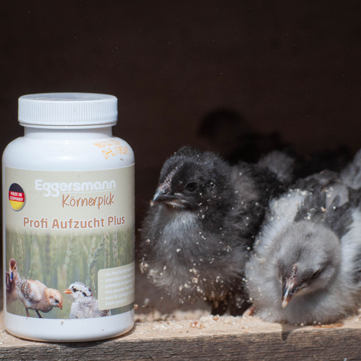 Körnerpick Profi Aufzucht Plus wurde speziell auf die Bedürfnisse junger Küken abgestimmt, um Aufzuchtverluste bei Hühnern, Enten und Gänsen zu reduzieren. Denn gerade in den ersten Lebenswochen ist die ausreichende Versorgung mit relevanten Nährstoffen wie Vitaminen (B-Komplex, A, D und E) und Spurenelementen (wie Mangan und Zink) besonders wichtig. Eine große Herausforderung in der Kükenaufzucht ist in dem Zusammenhang die noch nicht vollständig entwickelte Darmflora. Insbesondere bei Stress oder Infektionen kann es zu Entwicklungsstörungen der Bakterienflora im Verdauungstrakt kommen, was neben Problemen mit Verdauung und Nährstoffaufnahme zu einer Schwächung des Immunsystems führt. Denn im Darm sitzen ca. 70% des Immunsystems. Diese Ursachen können letztendlich zu einer unzureichenden Immunabwehr und / oder Mangelerscheinungen führen, was die kleinen Küken noch nicht anderweitig abfangen können, wodurch es schließlich zu traurigen Verlusten in der Aufzucht kommen kann. Daher ist es sinnvoll, junge Küken mit gezielten Ergänzungsfuttermitteln in ihrer Entwicklung zu unterstützen.