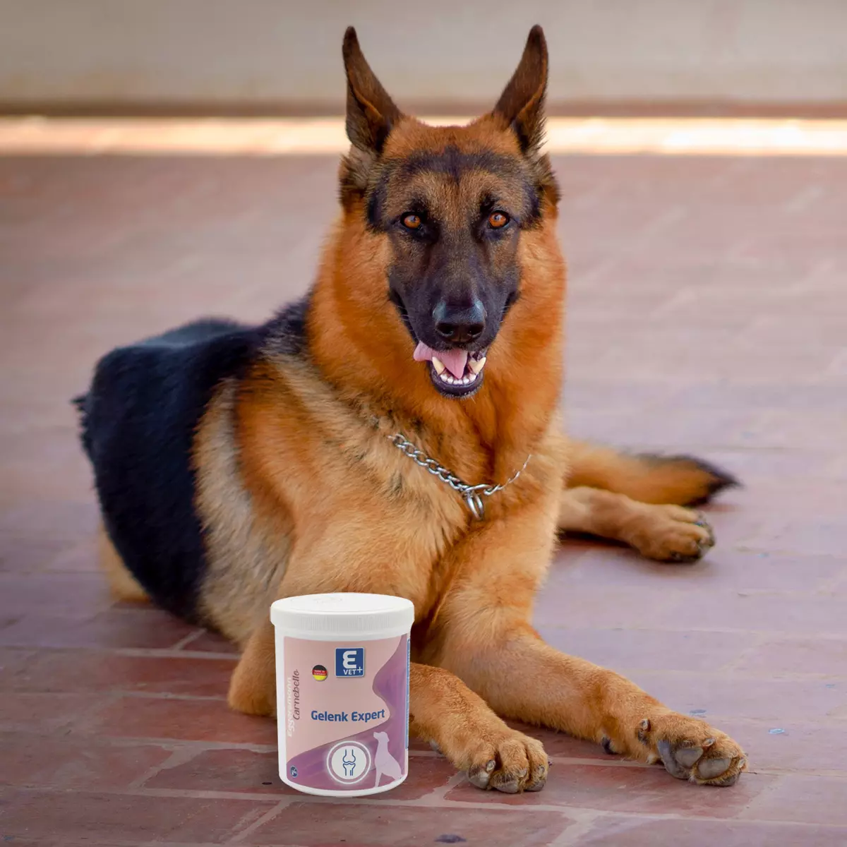 Unsere alte Schäferhund-Dame Anka leidet leider schon länger an Hüftdysplasie und bekommt seit einigen Wochen das Gelenk Expert zu ihrem Futter. Es hilft gegen die Symptome und unsere Hündin ist wieder aktiver und ich denke, dass sie auch weniger Schmerzen hat.