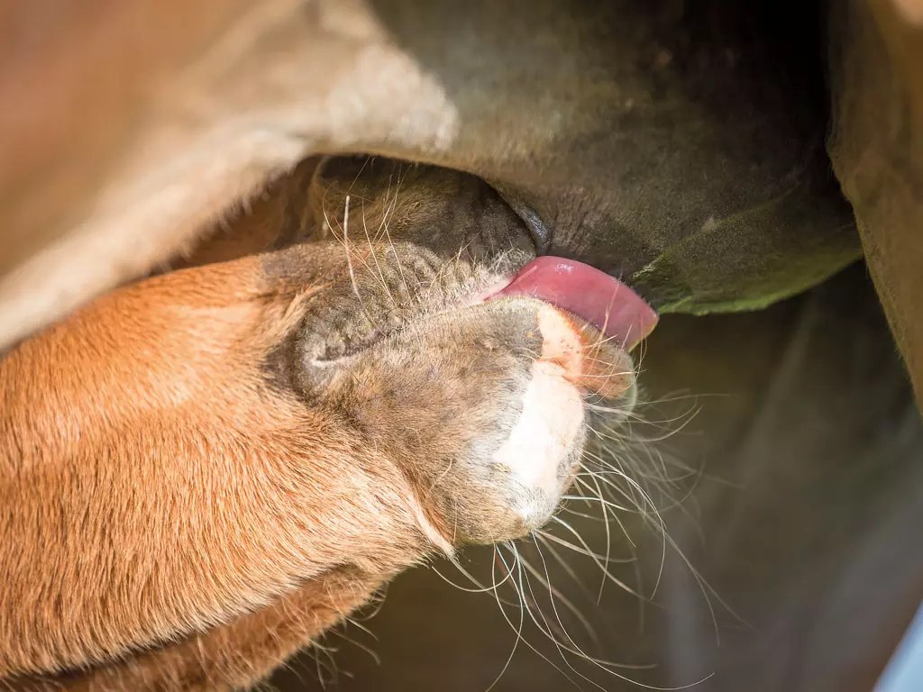 Mit der Geburt des Fohlens beginnt die Milchabgabe der Stute – die Laktationsphase. Jetzt deckt die Stute nicht mehr nur ihren eigenen Nährstoffbedarf, sondern sie ernährt über die Milch auch das Fohlen. Der neue Erdenbewohner sucht, sobald er auf eigenen Beinen stehen kann, die Zitzen der Mutterstute. Das ist entscheidend, damit das Fohlen das Kolostrum, auch Erst- oder Biestmilch genannt, innerhalb der ersten 2 Stunden nach der Geburt aufnimmt. Das Kolostrum liefert mit einem hohen Gehalt an Immunglobulinen, Eiweiß und den Vitaminen A und E wichtige Schutzstoffe für das Fohlen, um es vor Infektionen zu schützen. Denn die körpereigene Immunabwehr des Fohlens muss sich nach der Geburt erst noch ausbilden.