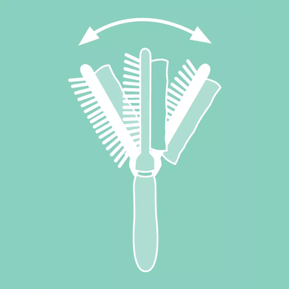 Auf der einen Seite bietet die Doppelbürste eine Zupfbürste zur Entfernung von losem Haar und leichten Verfilzungen aus der Unterwolle. Das Softkissen mit weichen Metallborsten sorgt dafür, dass die Fellpflege als angenehm empfunden wird. Auf der anderen Seite befinden sich Synthetikborsten zur Entfernung von feinsten Staubpartikeln. Sie bringt das Fell zum Glänzen.