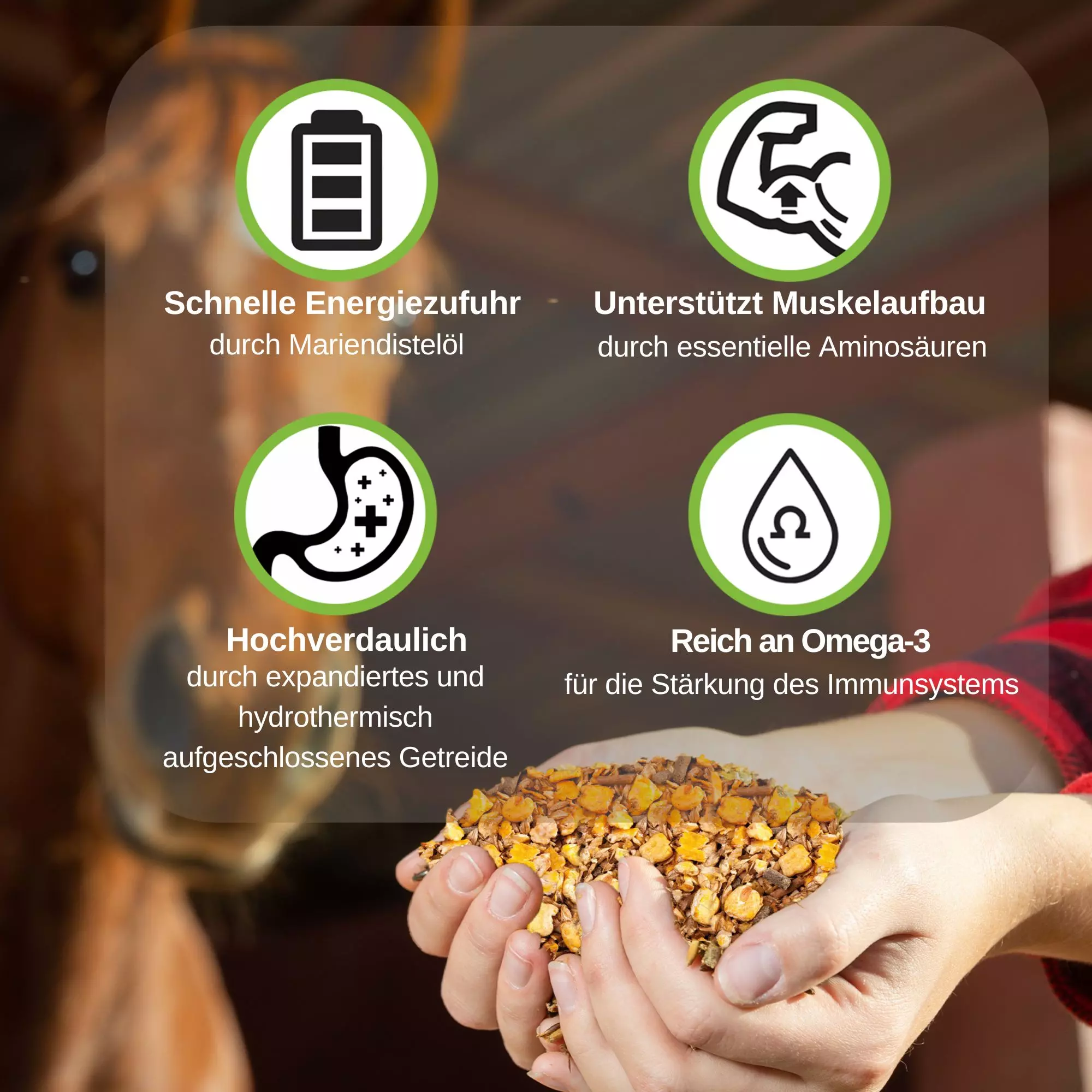 - für staubempfindliche, nervöse & appetitlose Pferde geeignet