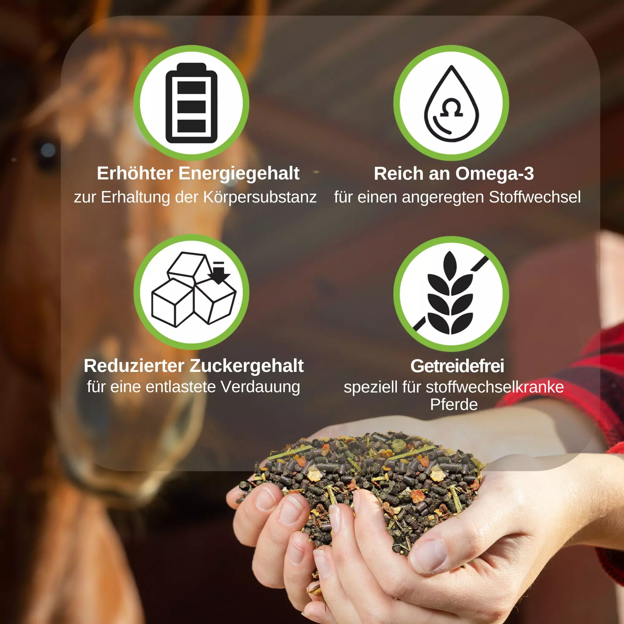 - optimal für ältere Pferde mit Stoffwechselerkrankungen